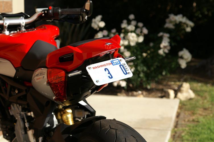 The RIvale Tail Tidy Kit is a simple solution to rid the Rivale of the stock rear fender and relocate the license plate, turn signals, and license plate lamp under the tail.